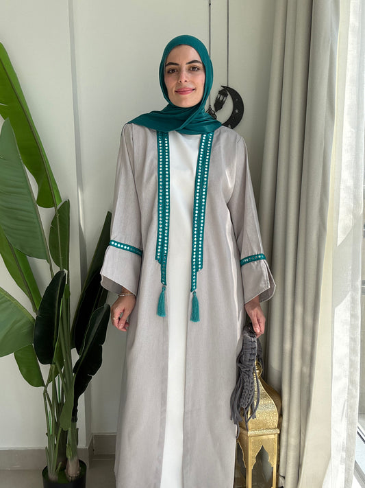 SAMA SILVER PEARLS KAFTAN WITH BELT